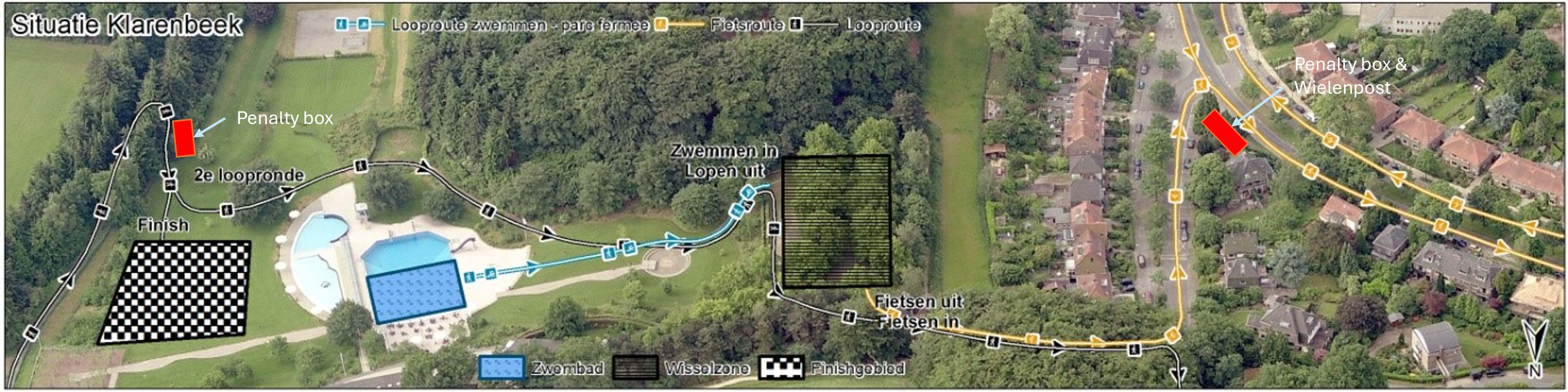 De finish bevindt zich op het terrein van het zwembad Klarenbeek. Het loopparcours en een afgesloten gedeelte achter de finish is alleen toegankelijk voor deelnemers, NTB-juryleden en de wedstrijdleiding. Het verdere terrein van het zwembad Klarenbeek is vrij toegankelijk voor toeschouwers en bezoekers van de wedstrijd. Op het zwembadterrein bevindt zich tevens het bedrijven/commercie terrein waar de verschillende sponsors een presentatiestand neer kunnen zetten waarin zij zich kunnen presenteren. Er zijn bewaakte oversteekplaatsen op het parcours rondom het zwembad om zo het komen en gaan van toeschouwers en deelnemers in goede banen te leiden.