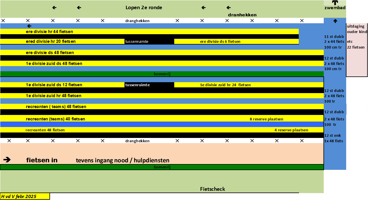 Bij het ingaan van de tweede ronde bij het fietsen voegen nieuwe teams in op het parcours. Dit verdient extra aandacht van alle deelnemers. (zie voor de kaart van het fietsparcours deze link en voor een Video van fietsparcours).